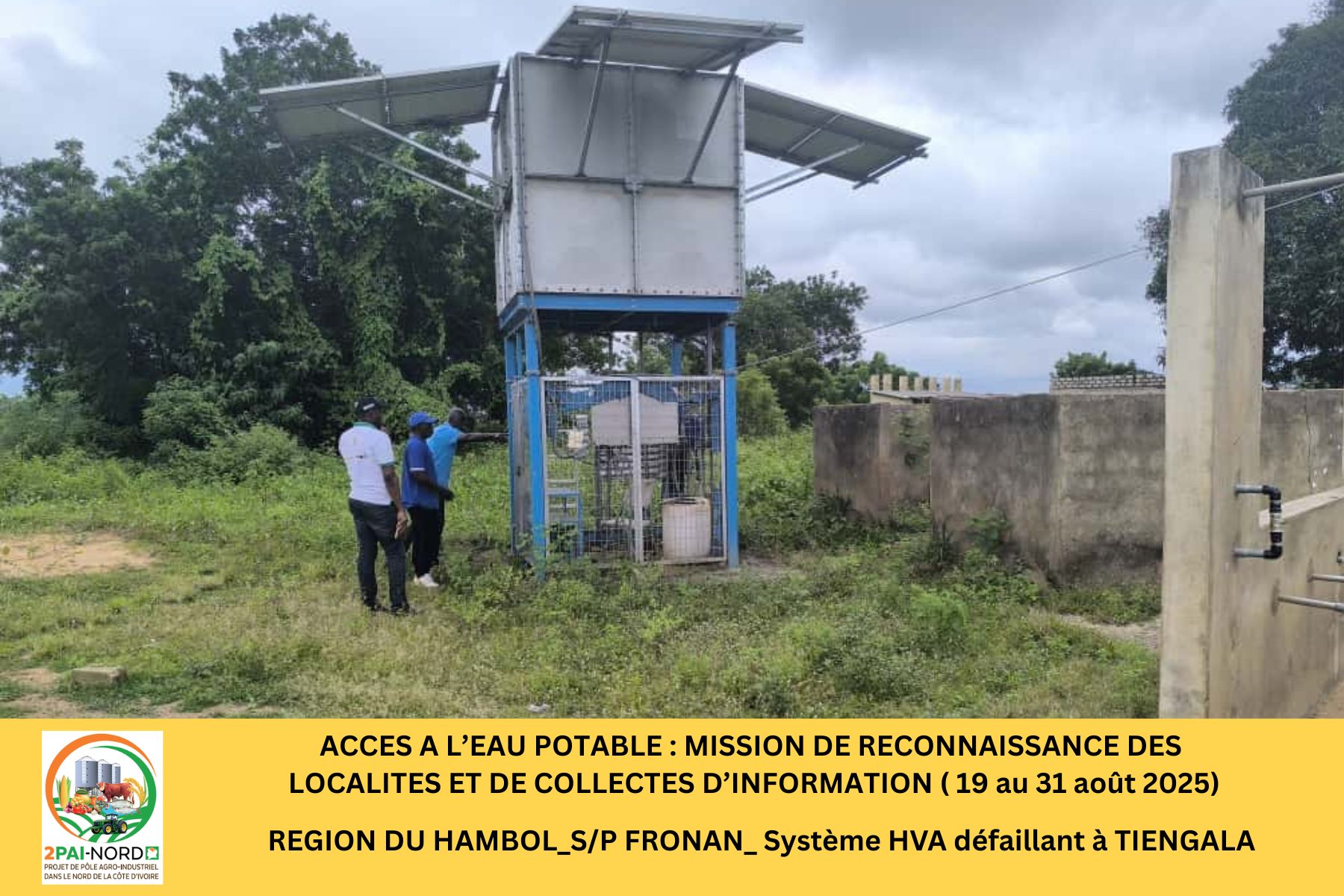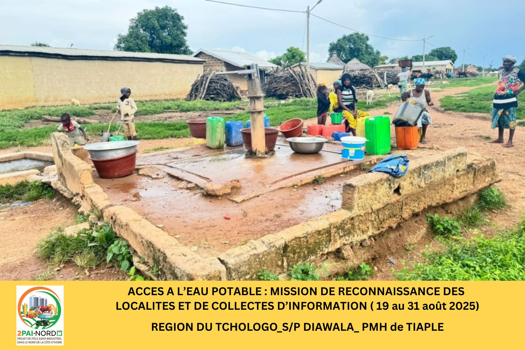 L’accès à l’eau potable reste une problématique majeure dans les localités du nord de la Côte d’Ivoire en général, et tout particulièrement dans les quatre (4) régions d’intervention du 2PAI-NORD que sont la Bagoué, le Hambol, le Poro et le Tchologo.